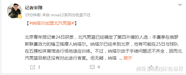 只是纳塔尔是首次征战CBA,他有望在2月27日对阵上海的比赛迎来加盟首秀。纳塔尔能否适应CBA的比赛强度,以及能否提升北京的外援整体竞争力,唯有拭目以待之。